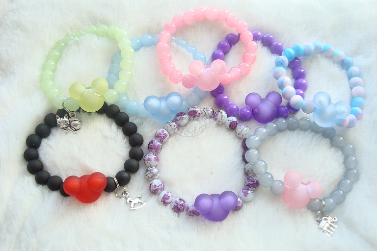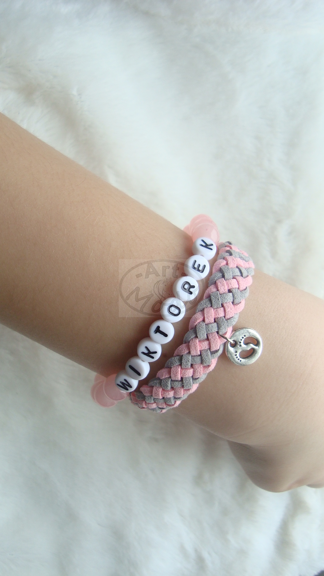 Materiały: koraliki szklane 8 mm , rzemienie zamszowe ekologiczne, pompony z poliestru, elementy metalowe bez kadmu niklu i ołowiu.